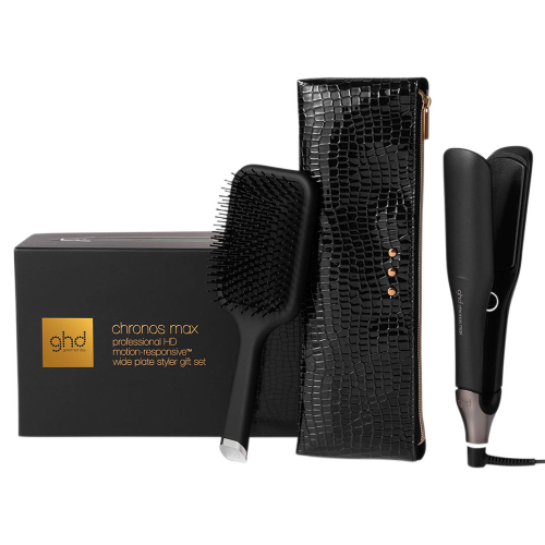 Regalati un look da passerella in ogni occasione con il nuovo GHD CHRONOS festive gift set, il tuo passaporto per uno styling ad alta definizione e senza compromessi. In questo elegante cofanetto di natale, la piastra è accompagnata dall'All-Rounder PADDLE BRUSH e da una pratica custodia termoresistente, trasformando la tua routine in un rituale di lusso quotidiano.Con la sua tecnologia HD motion-responsive,la piastra GHD CHRONOS è 2 volte più reattiva rispetto alle generazioni precedenti: rileva ogni movimento e adatta costantemente il calore, mantenendo la temperatura ottimale di 185?C con la massima precisione. Così ottieni uno styling personalizzato, più rapido e più protetto, con risultati 3 volte più veloci che durano fino a 24 ore e il triplo della protezione contro la rottura.
